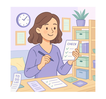 Tarjetas de Limpieza – Material visual que muestra, de forma simple, lo que hacer en cada espacio del hogar.