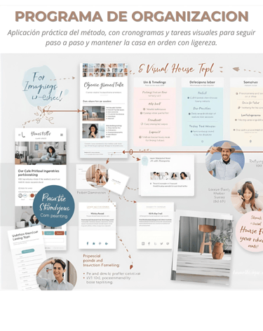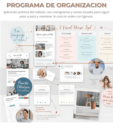 Aplicación práctica del método, con cronogramas y tareas visuales para seguir paso a paso y mantener la casa en orden con ligereza.